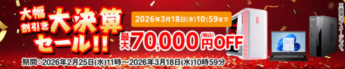 ゲーミングPC・クリエイター向け・一般向けPCを安く買うことができます。(過去には最大80,000円値引きも!)