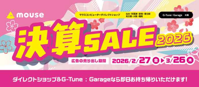 マウスコンピューターで取り扱っているPC、パーツ、モニター、タブレットが半値近くまで安くなります。